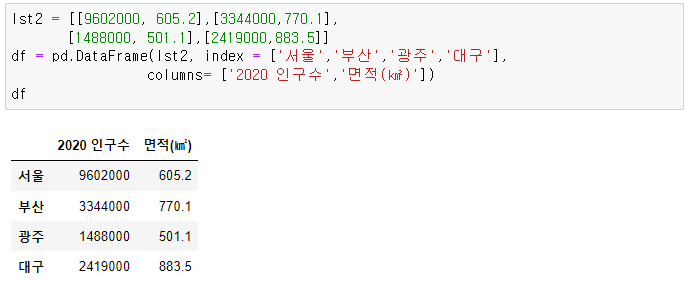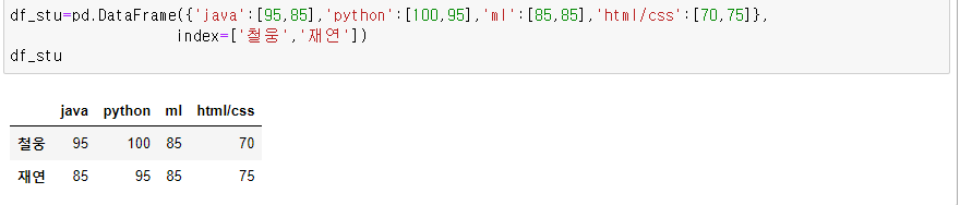 * 2차원 데이터 프레임 인덱싱 슬라이싱